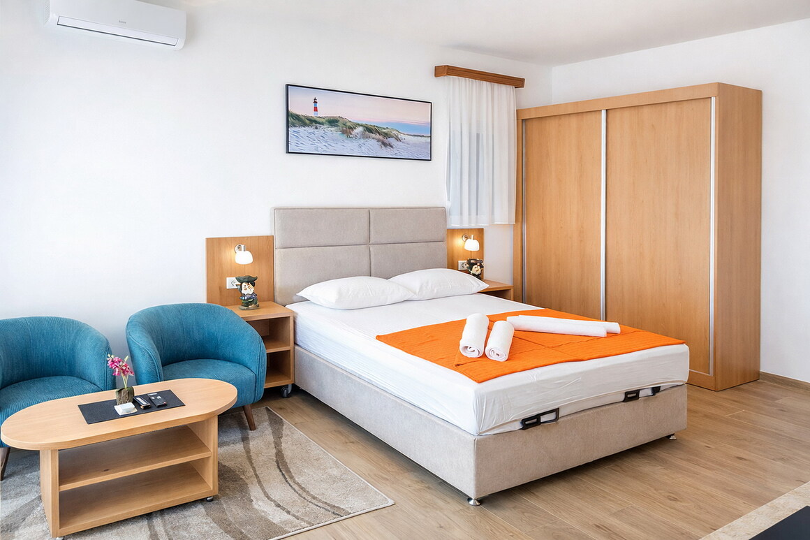 Apartments are modern equipped with all amenities (air conditioning, cable TV, kitchen, bathroom, wireless internet, terrace overlooking the sea) with special emphasize comfort and space suits, and very